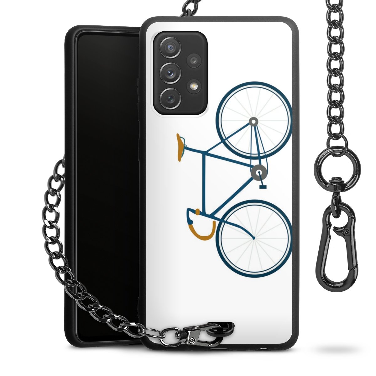 - Mattschwarze Handyhülle mit Metallkette