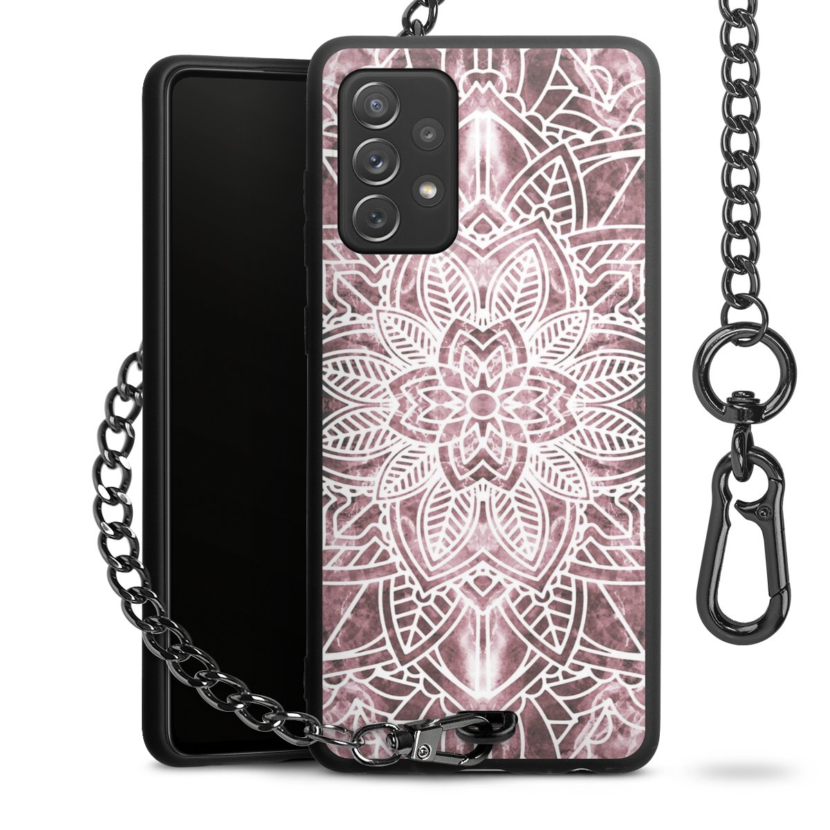 • Mattschwarze Handyhülle mit Metallkette