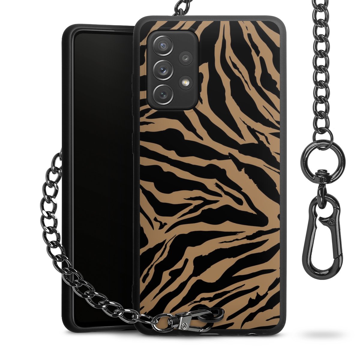 - Mattschwarze Handyhülle mit Metallkette