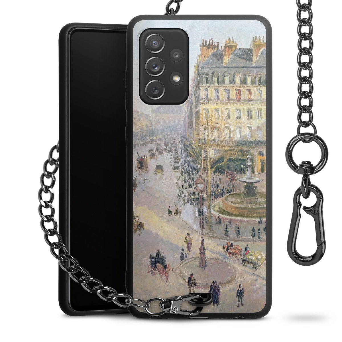 • Mattschwarze Handyhülle mit Metallkette