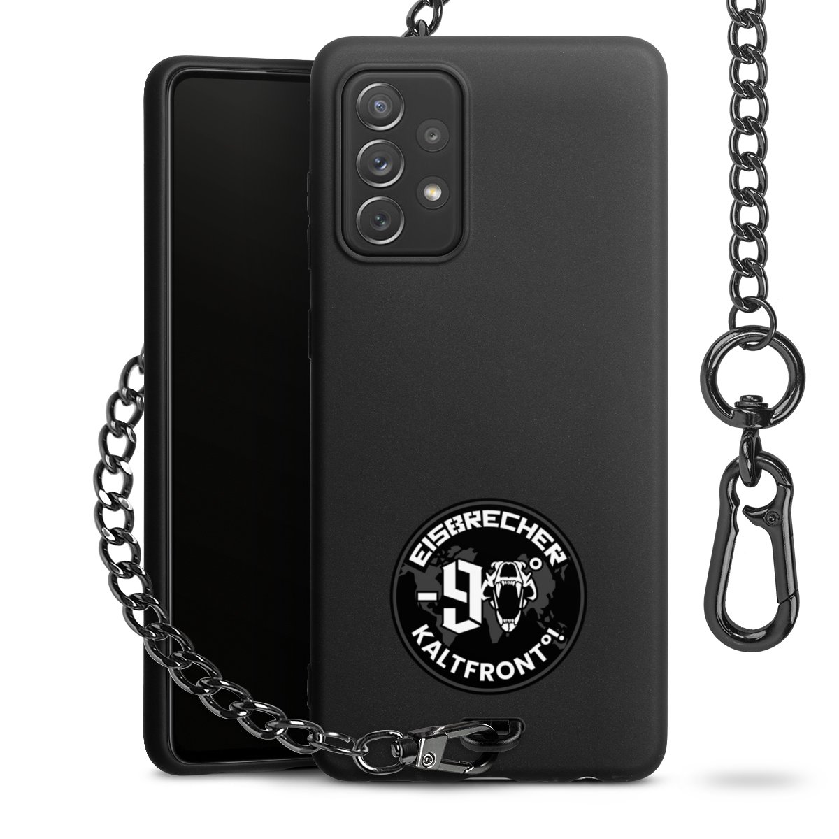 • Mattschwarze Handyhülle mit Metallkette