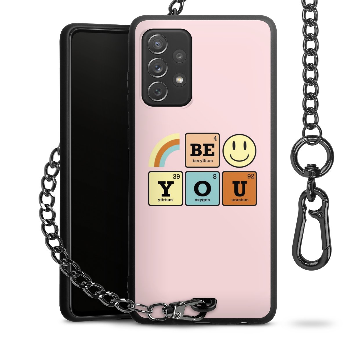 Die mattschwarze Silikon-Handyhülle besteht aus robustem TPU (thermoplastisches Polyurethan). Sie ist flexibel und schützt Dein Smartphone vor Stößen und Kratzern. Die Kette sowie der Karabinerhaken sind aus Metall in Gunmetal-Optik gefertigt. Für dieses Produkt kommen ausschließlich TÜV-geprüfte Materialien zum Einsatz.