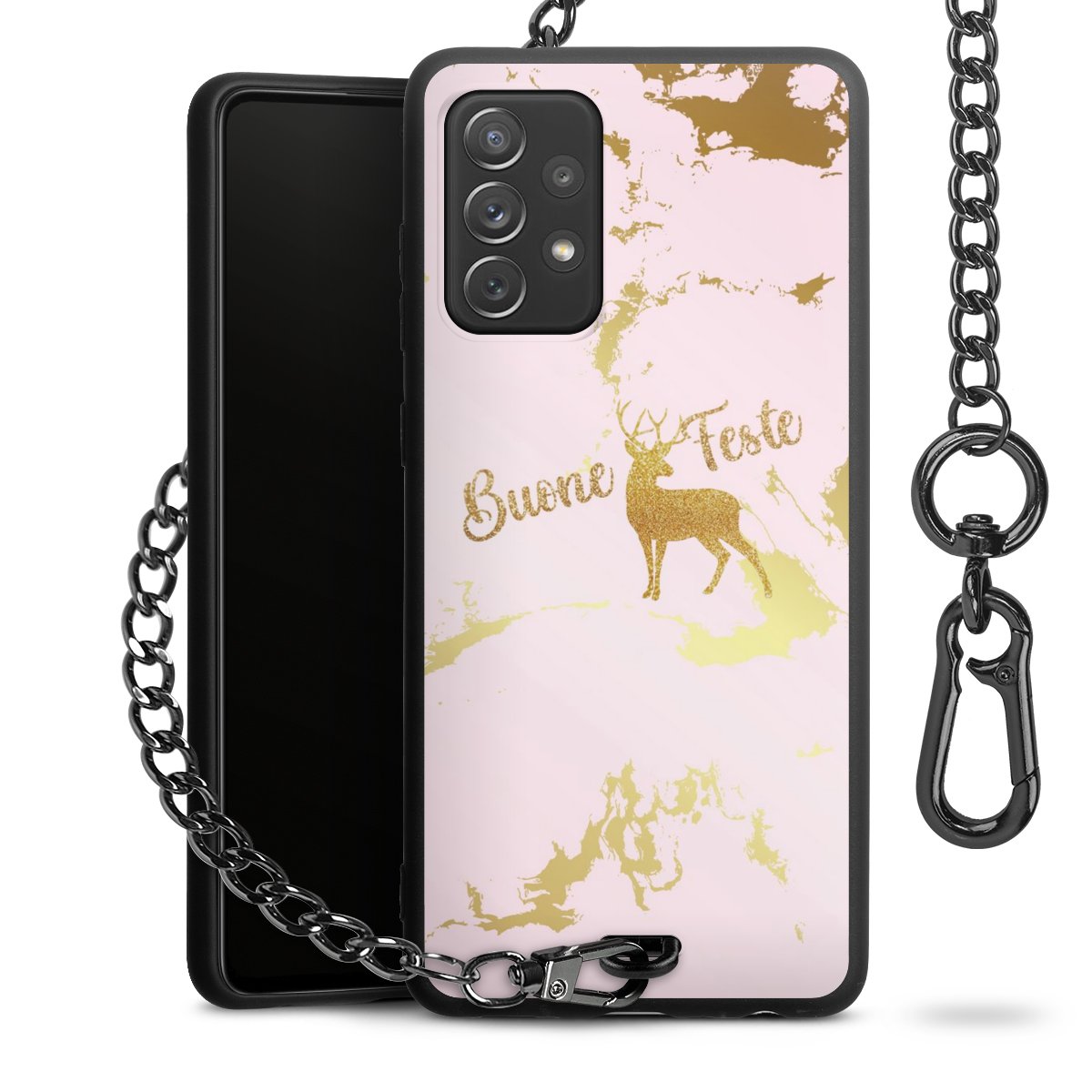 - Mattschwarze Handyhülle mit Metallkette