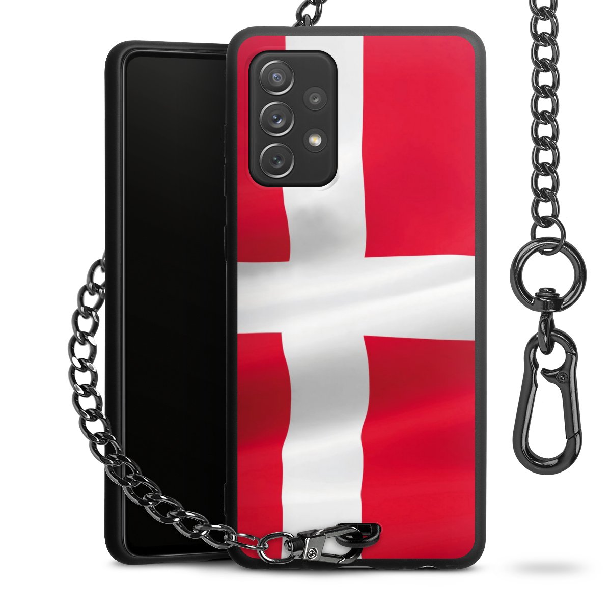 Die mattschwarze Silikon-Handyhülle besteht aus robustem TPU (thermoplastisches Polyurethan). Sie ist flexibel und schützt Dein Smartphone vor Stößen und Kratzern. Die Kette sowie der Karabinerhaken sind aus Metall in Gunmetal-Optik gefertigt. Für dieses Produkt kommen ausschließlich TÜV-geprüfte Materialien zum Einsatz.