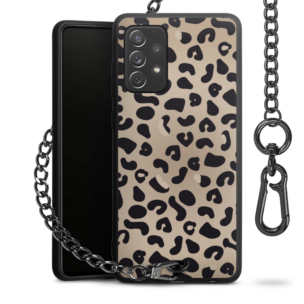- Mattschwarze Handyhülle mit Metallkette
