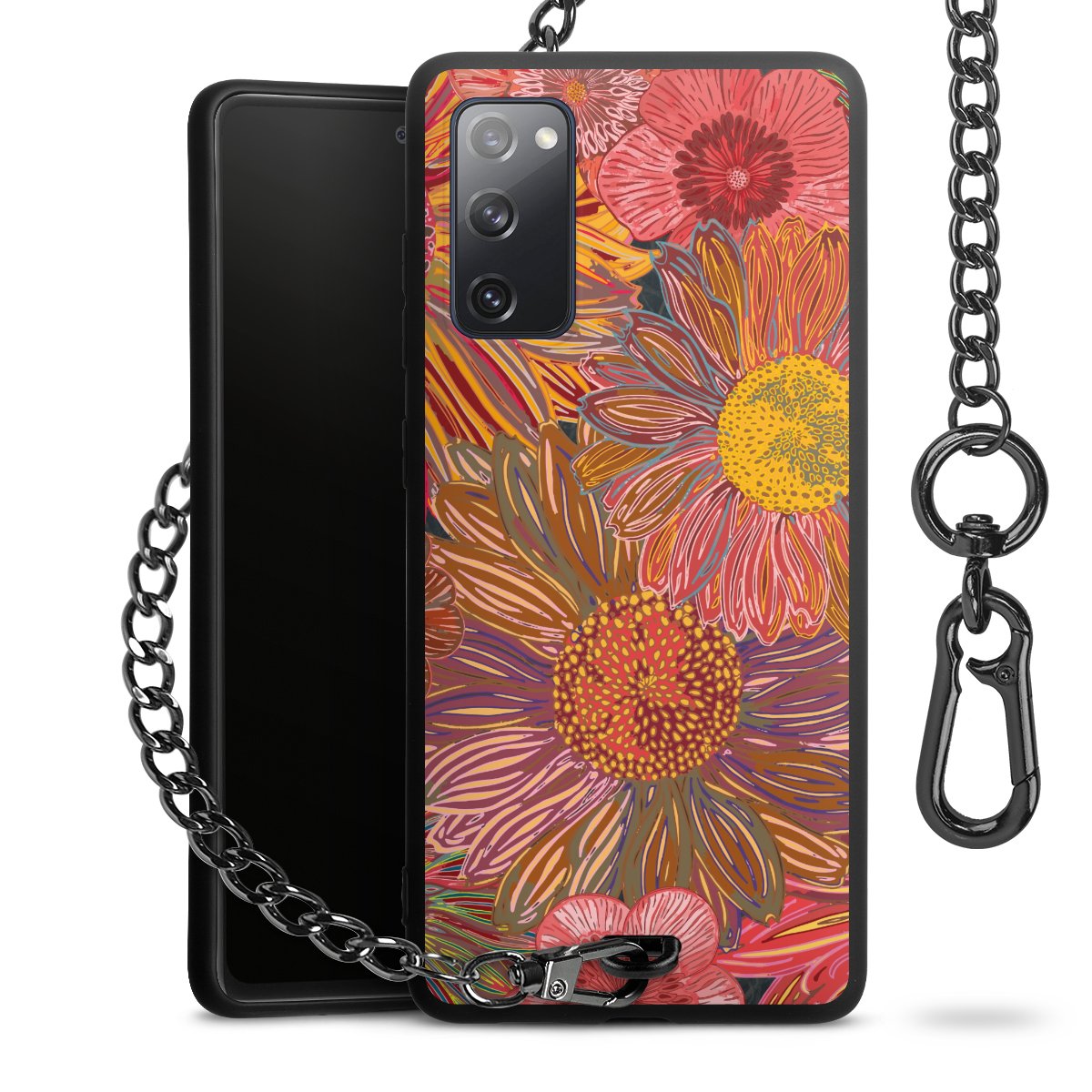 • Mattschwarze Handyhülle mit Metallkette