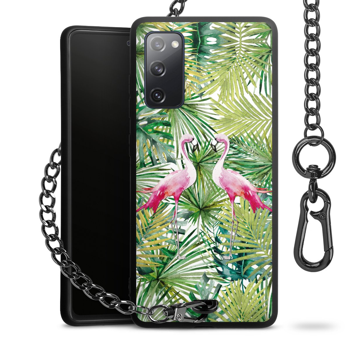 Die Handyhülle verfügt über eine mittig am unteren Rand platzierte Öse, an der die Metallkette stabil befestigt ist. Bestelle die Hülle einfach für Dein Smartphone-Modell, dann passt sie wie angegossen und Du brauchst sie bloß einmal anzudrücken. Handy in die Tasche, Karabiner an den Hosenbund – schon kann die Party starten.