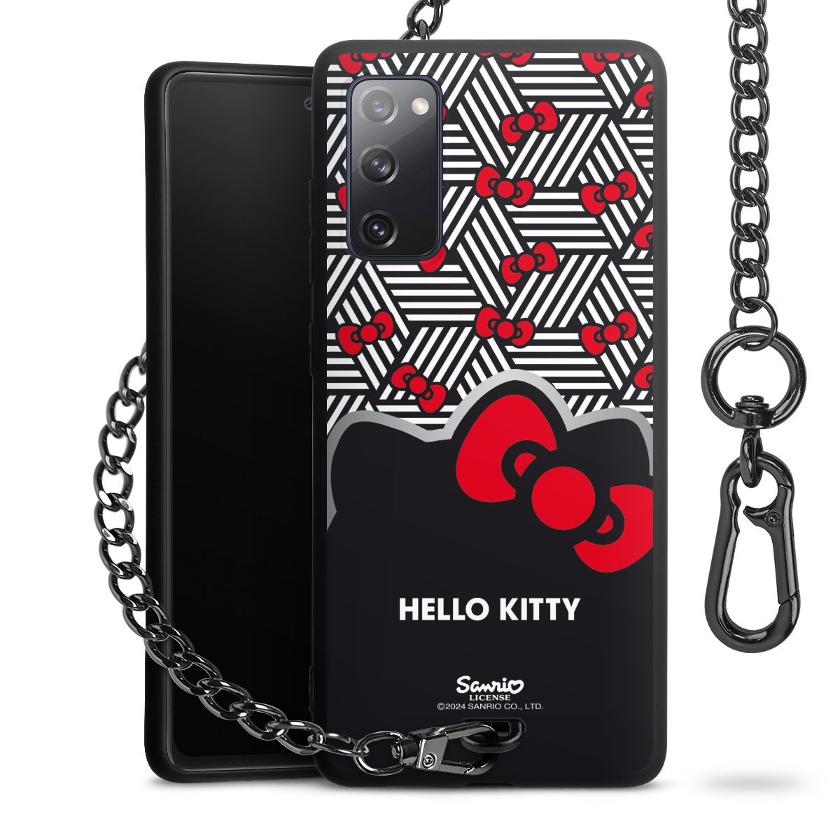 Die Handyhülle verfügt über eine mittig am unteren Rand platzierte Öse, an der die Metallkette stabil befestigt ist. Bestelle die Hülle einfach für Dein Smartphone-Modell, dann passt sie wie angegossen und Du brauchst sie bloß einmal anzudrücken. Handy in die Tasche, Karabiner an den Hosenbund – schon kann die Party starten.