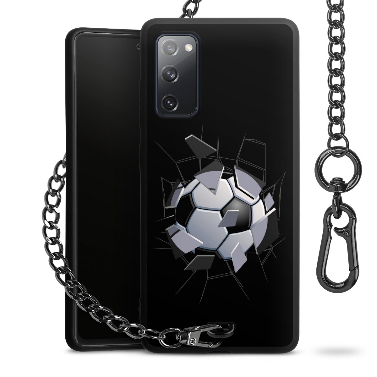 - Mattschwarze Handyhülle mit Metallkette