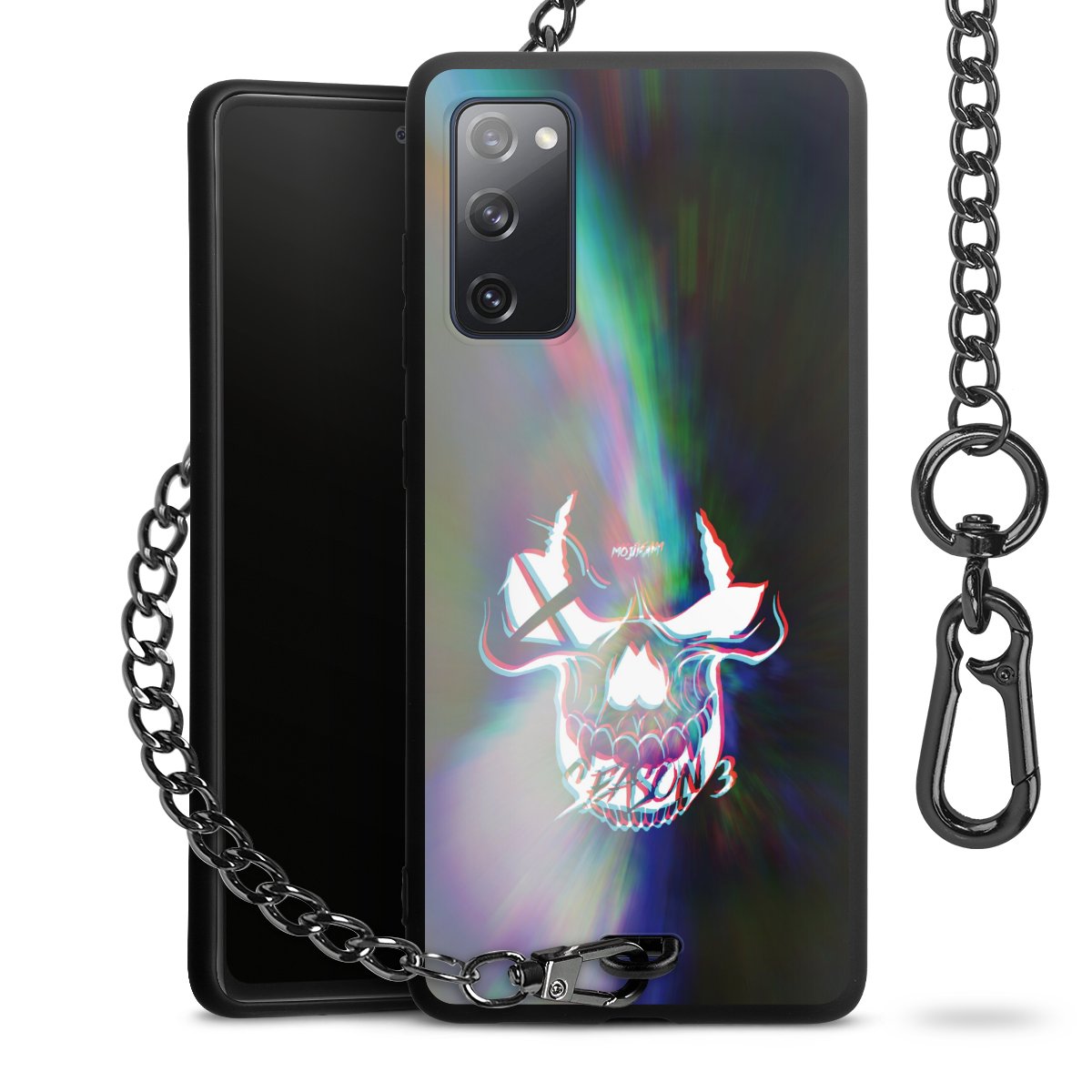 • Mattschwarze Handyhülle mit Metallkette