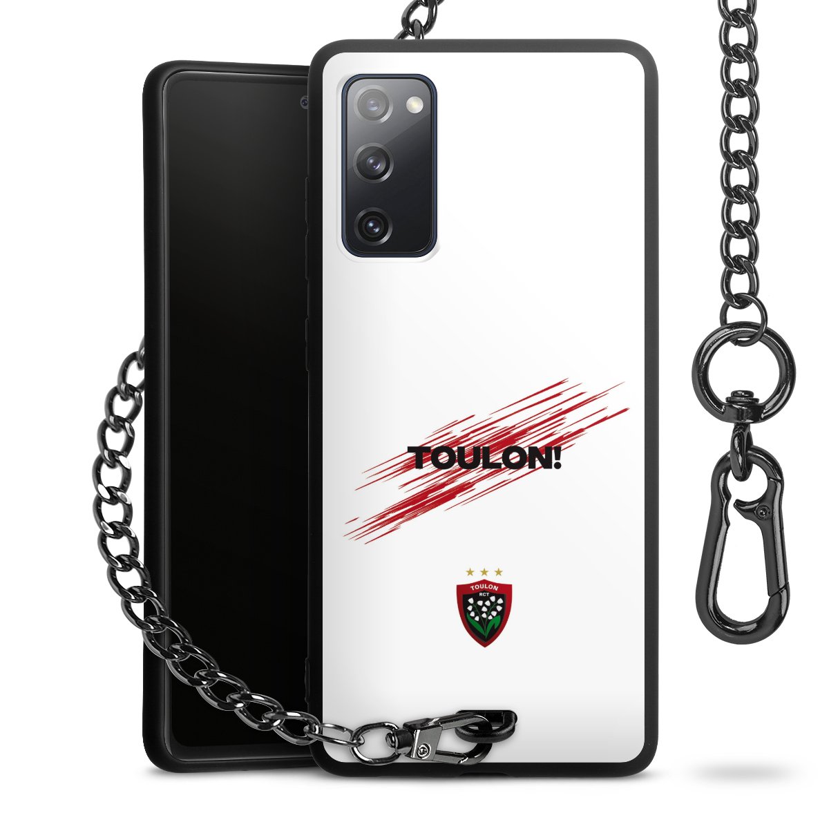 • Mattschwarze Handyhülle mit Metallkette