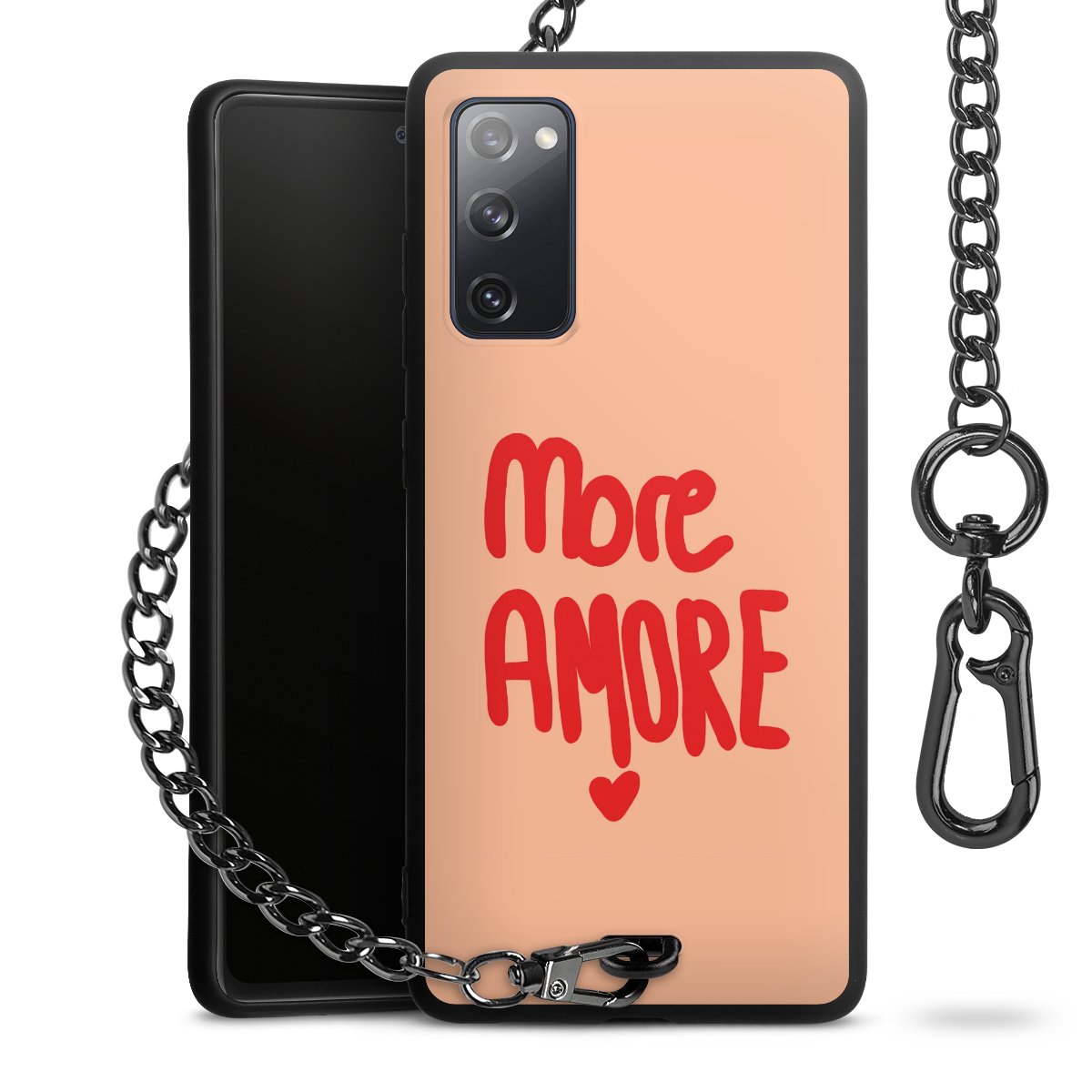 • Mattschwarze Handyhülle mit Metallkette