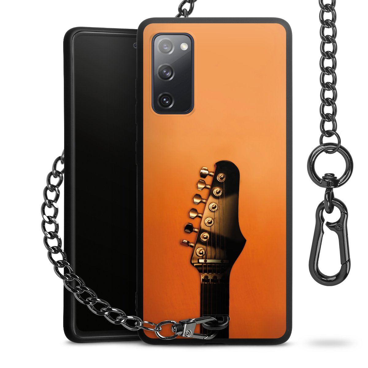 • Mattschwarze Handyhülle mit Metallkette