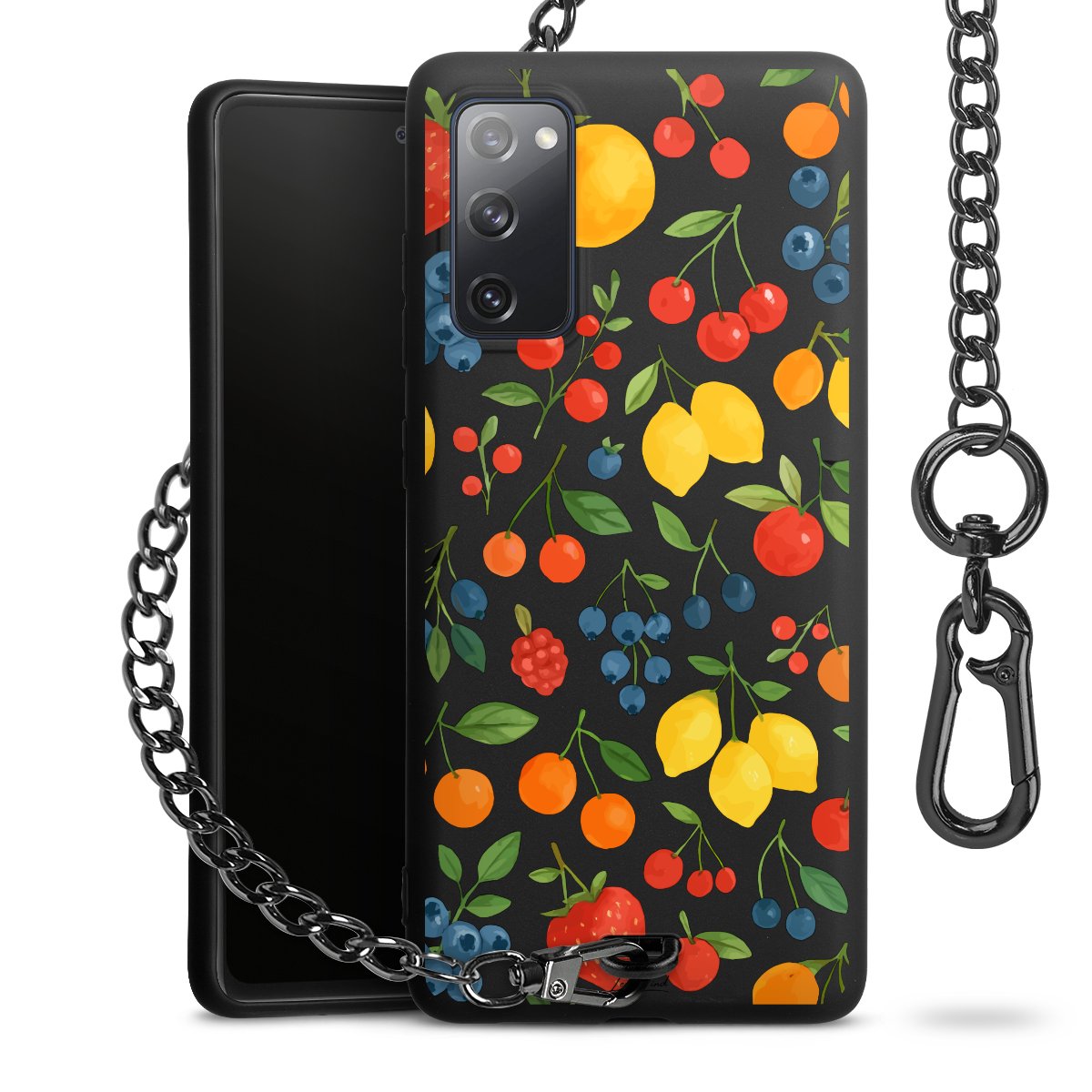 • Mattschwarze Handyhülle mit Metallkette