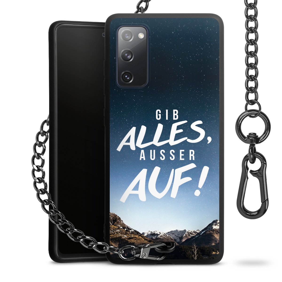• Mattschwarze Handyhülle mit Metallkette