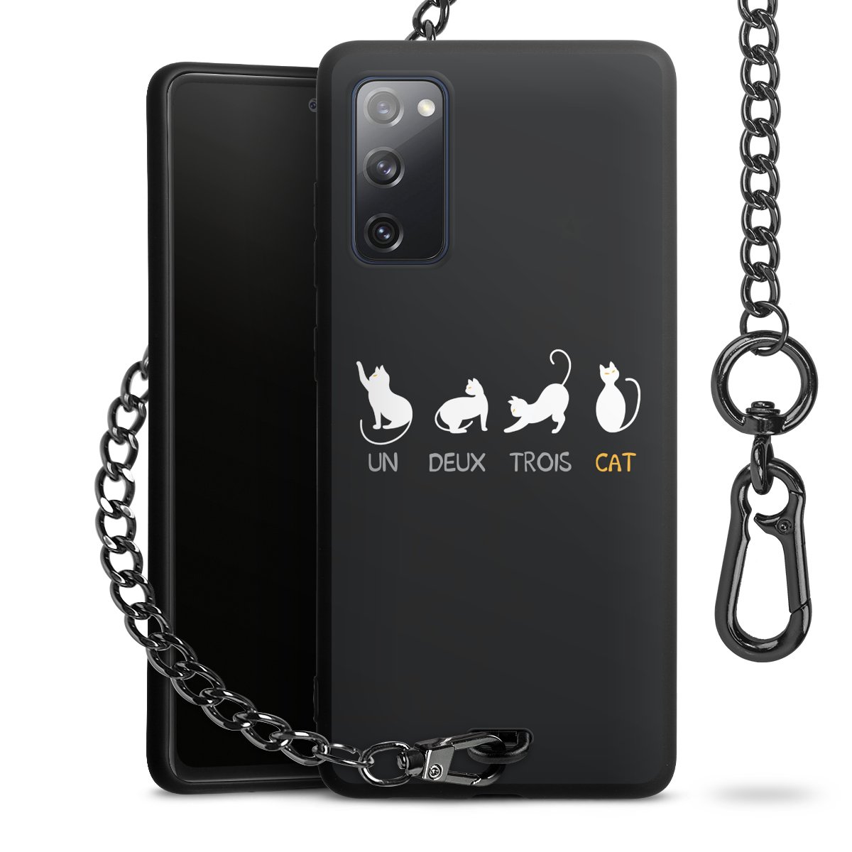 - Mattschwarze Handyhülle mit Metallkette