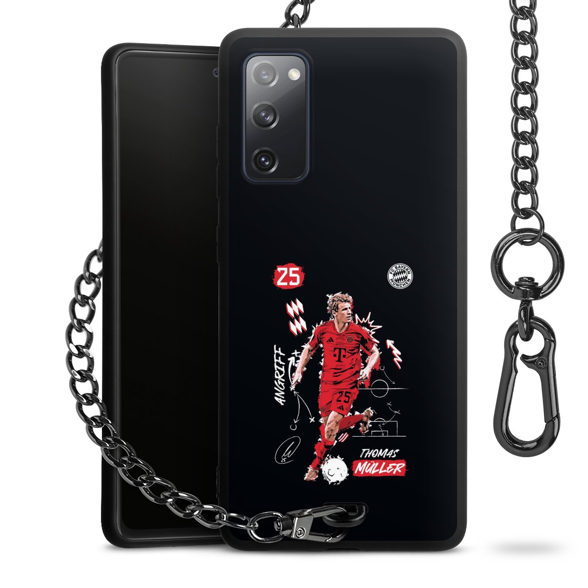 • Mattschwarze Handyhülle mit Metallkette