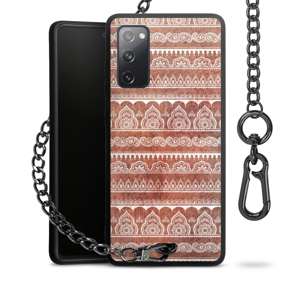 • Mattschwarze Handyhülle mit Metallkette