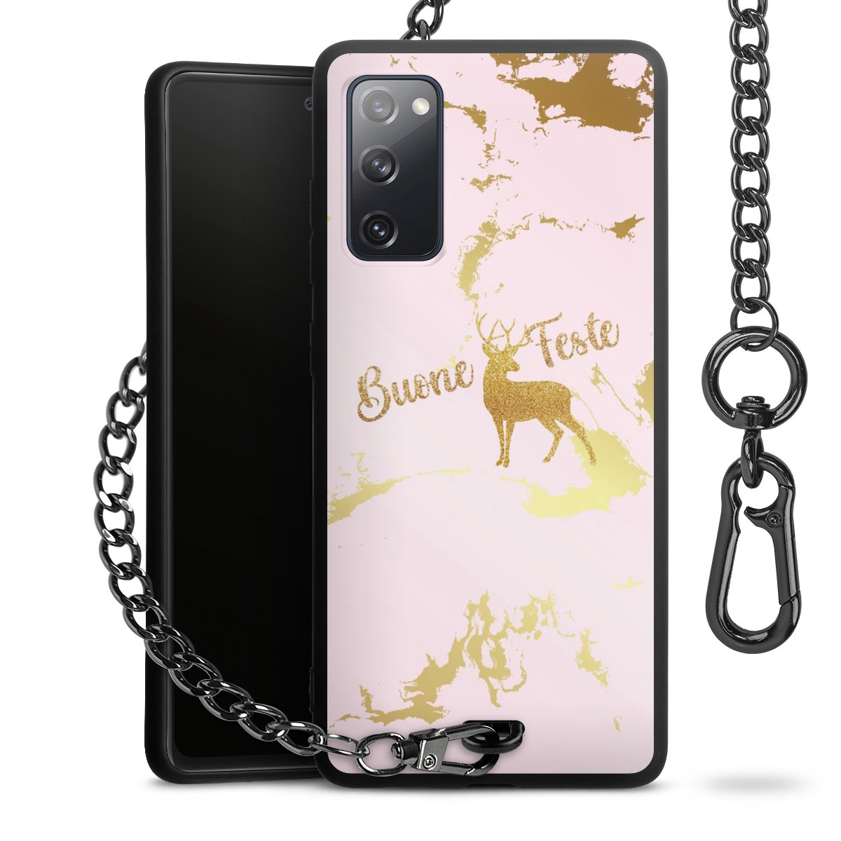 - Mattschwarze Handyhülle mit Metallkette