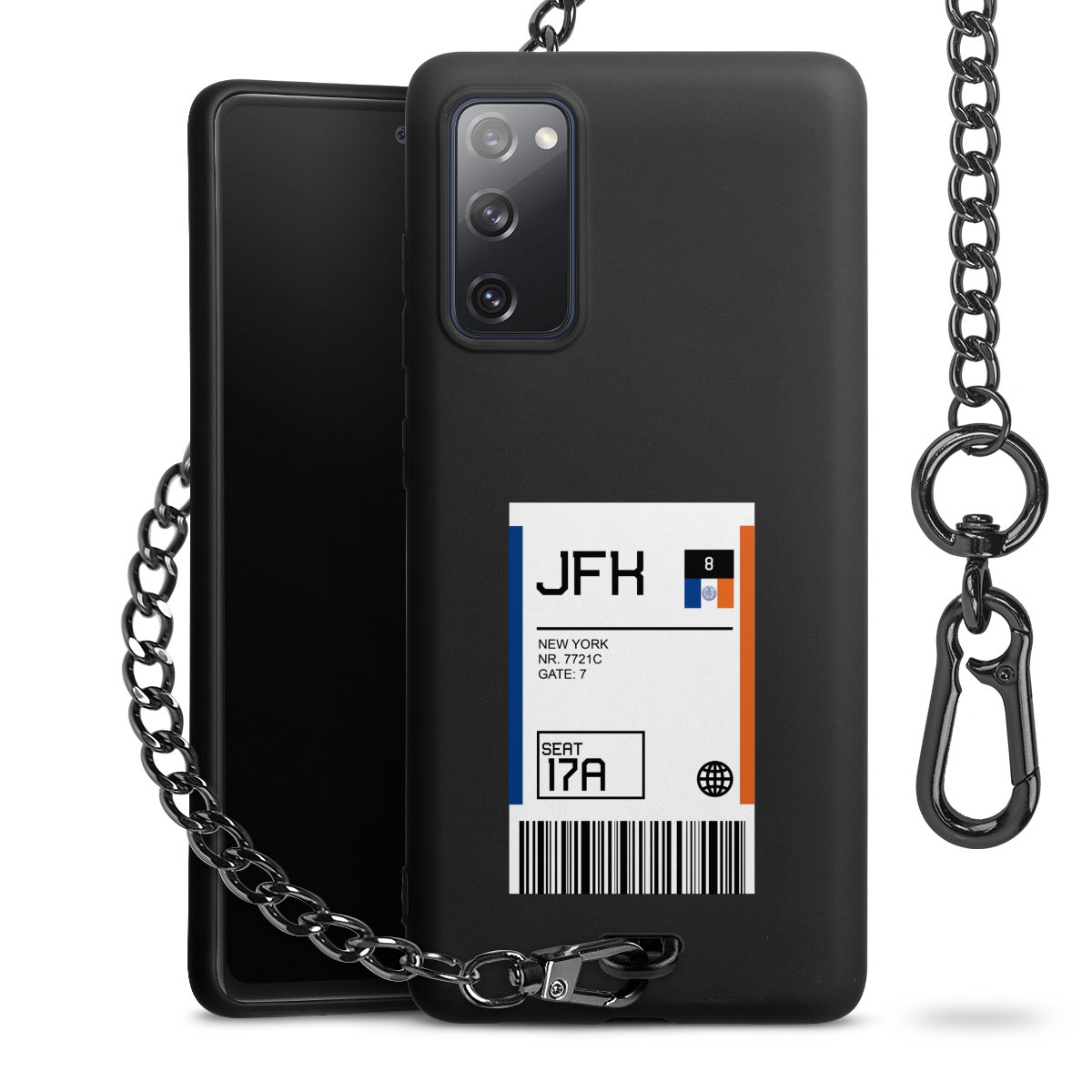 - Mattschwarze Handyhülle mit Metallkette