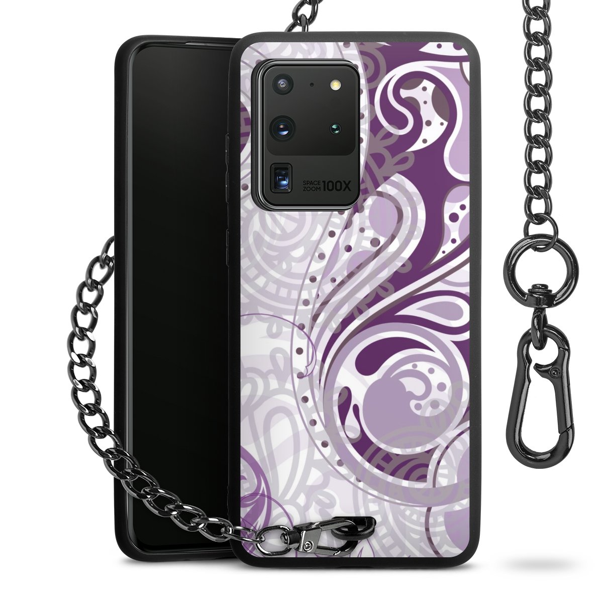 • Mattschwarze Handyhülle mit Metallkette