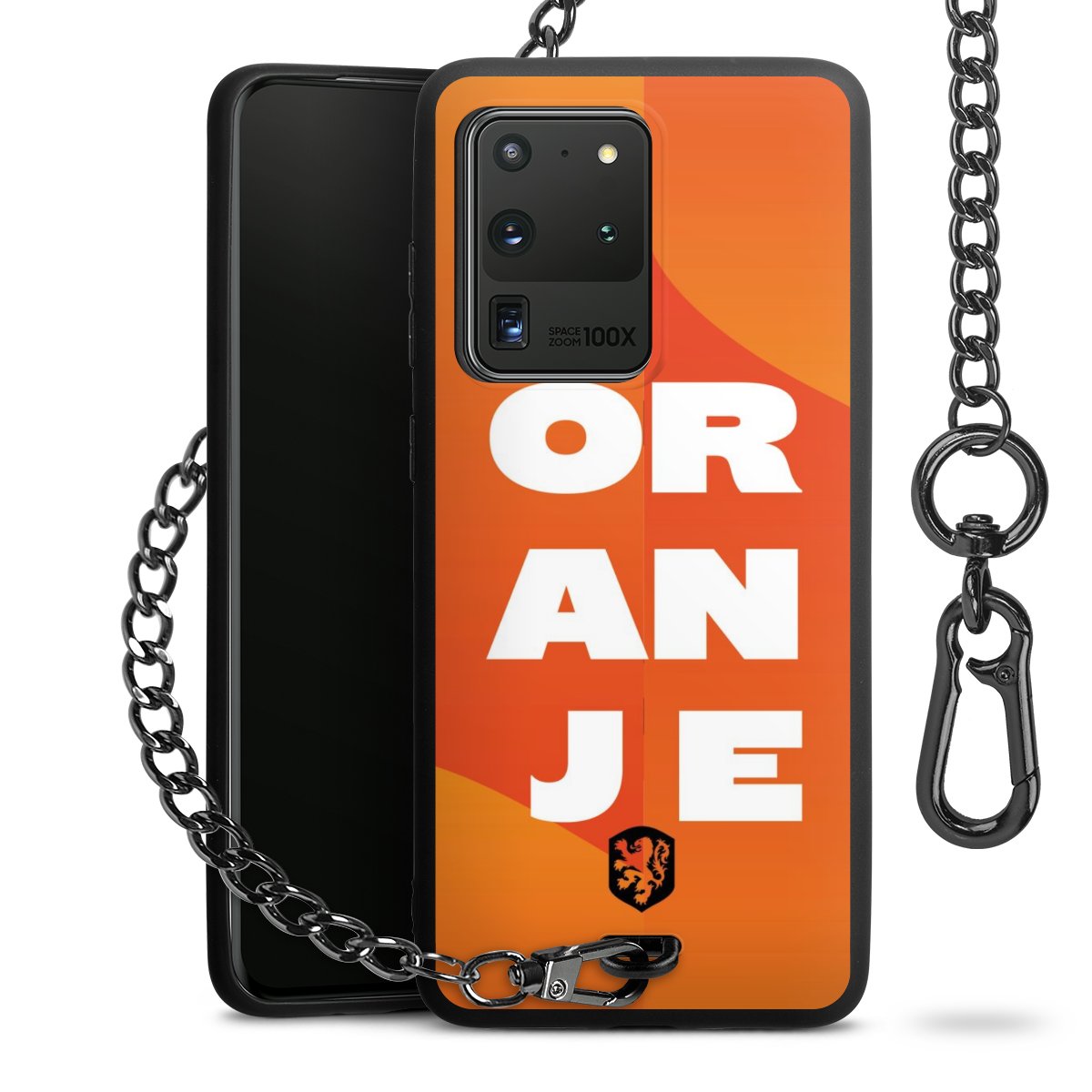 - Mattschwarze Handyhülle mit Metallkette