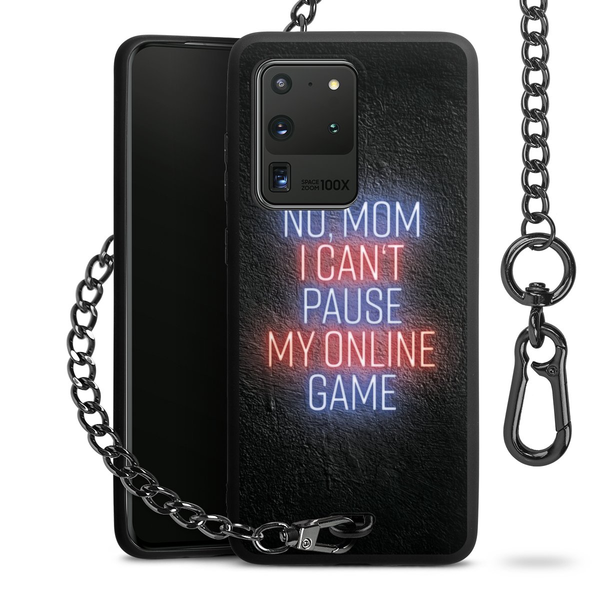 - Mattschwarze Handyhülle mit Metallkette