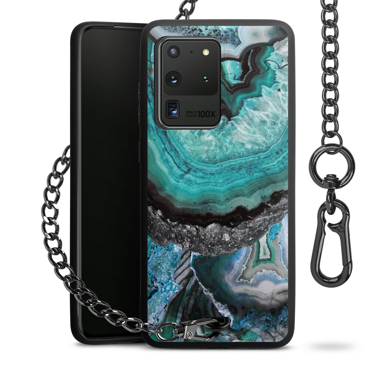 • Mattschwarze Handyhülle mit Metallkette