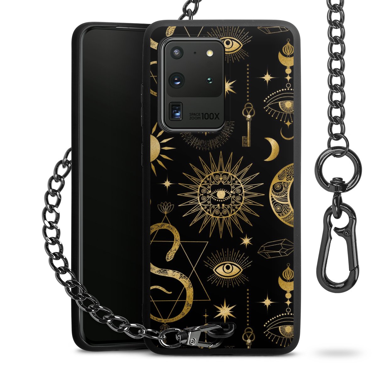 • Mattschwarze Handyhülle mit Metallkette