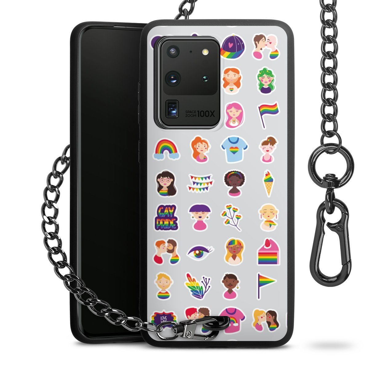 - Mattschwarze Handyhülle mit Metallkette