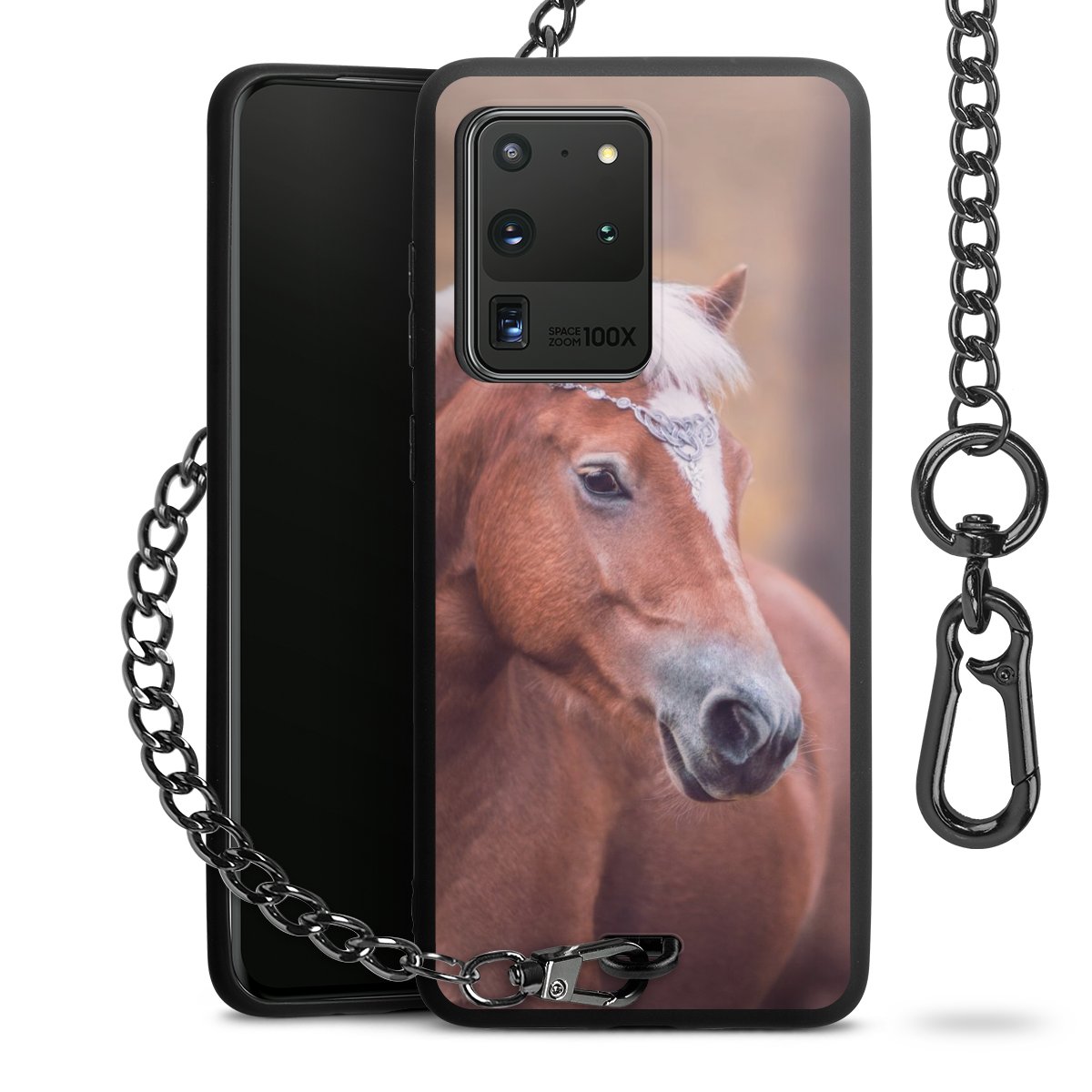 • Mattschwarze Handyhülle mit Metallkette
