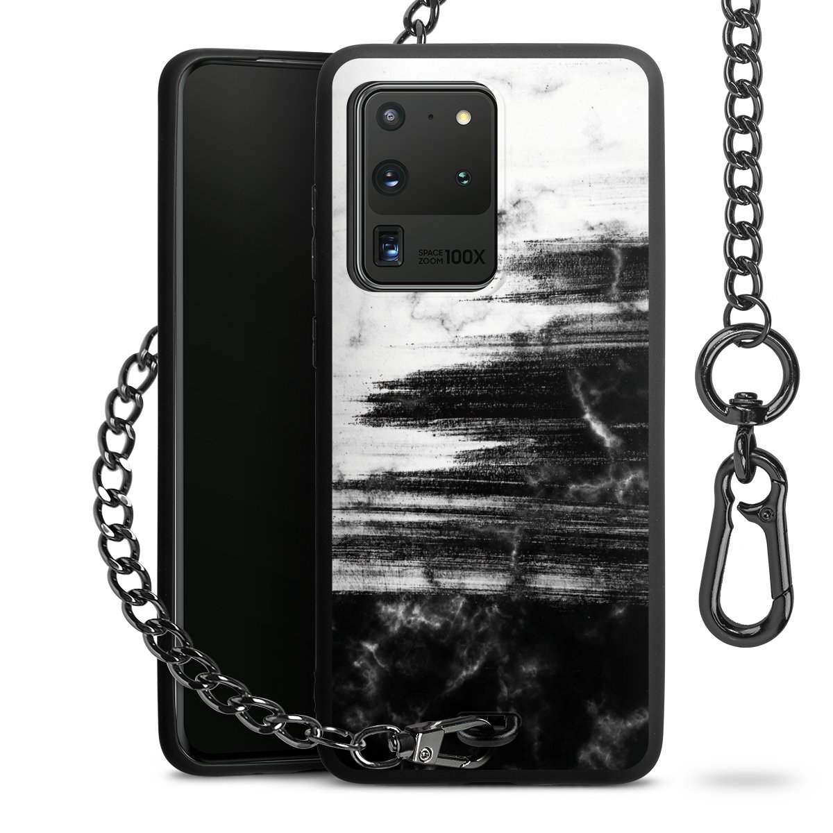 • Mattschwarze Handyhülle mit Metallkette