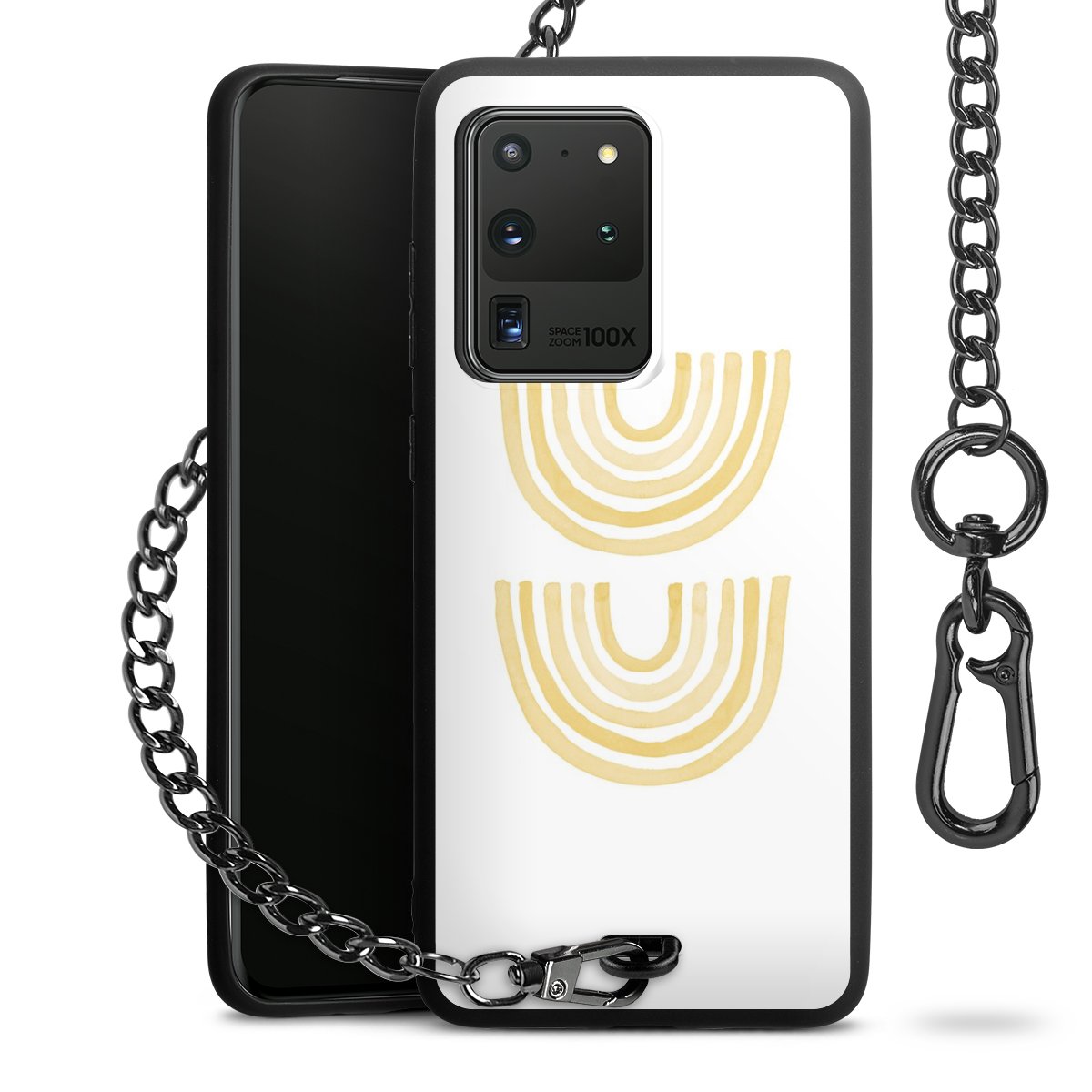 • Mattschwarze Handyhülle mit Metallkette