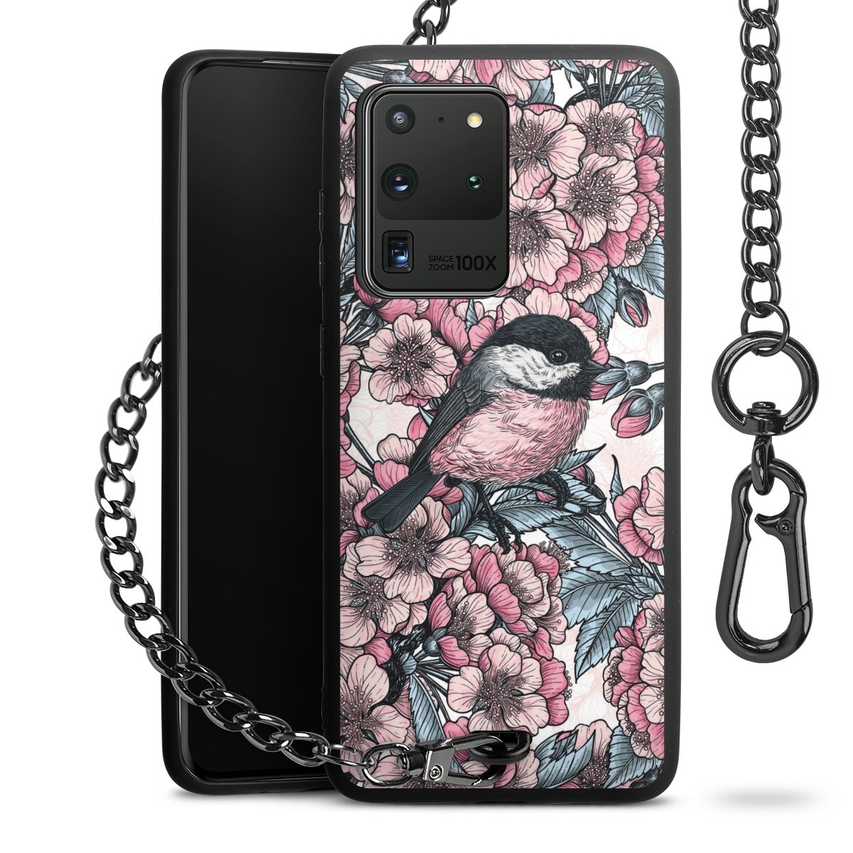• Mattschwarze Handyhülle mit Metallkette