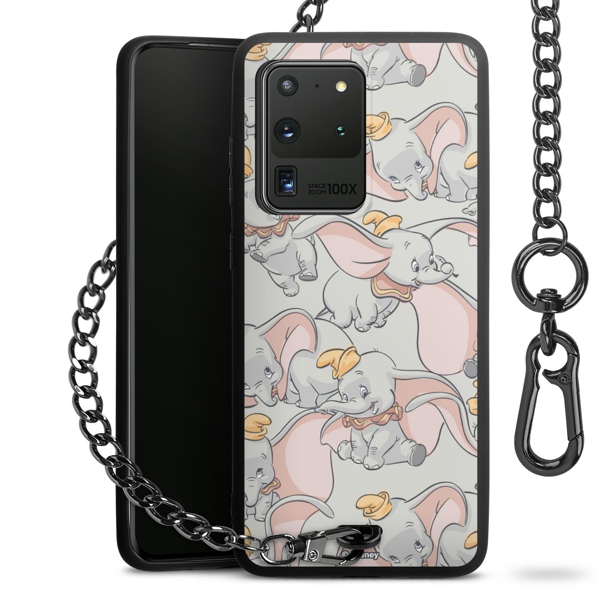 Die Handyhülle verfügt über eine mittig am unteren Rand platzierte Öse, an der die Metallkette stabil befestigt ist. Bestelle die Hülle einfach für Dein Smartphone-Modell, dann passt sie wie angegossen und Du brauchst sie bloß einmal anzudrücken. Handy in die Tasche, Karabiner an den Hosenbund – schon kann die Party starten.
