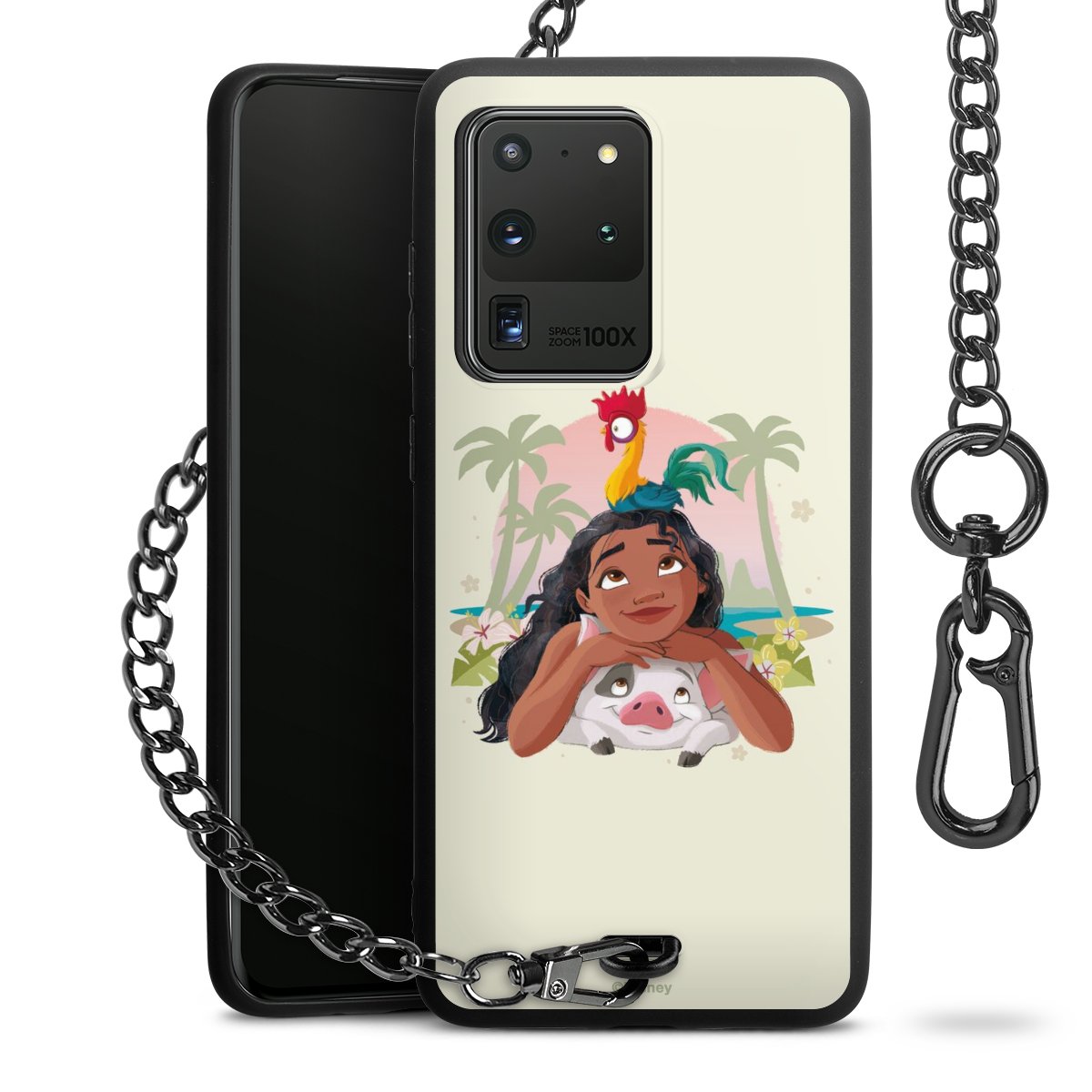 - Mattschwarze Handyhülle mit Metallkette