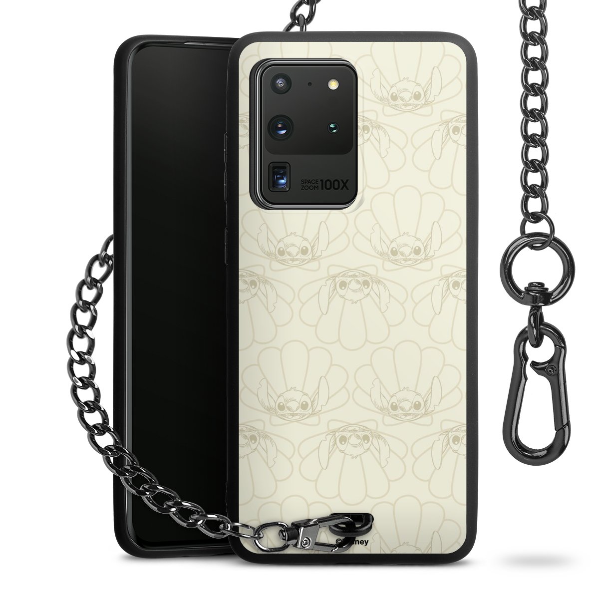 Die Handyhülle verfügt über eine mittig am unteren Rand platzierte Öse, an der die Metallkette stabil befestigt ist. Bestelle die Hülle einfach für Dein Smartphone-Modell, dann passt sie wie angegossen und Du brauchst sie bloß einmal anzudrücken. Handy in die Tasche, Karabiner an den Hosenbund – schon kann die Party starten.