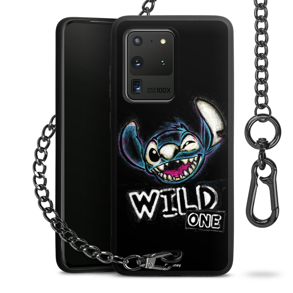 Die Handyhülle verfügt über eine mittig am unteren Rand platzierte Öse, an der die Metallkette stabil befestigt ist. Bestelle die Hülle einfach für Dein Smartphone-Modell, dann passt sie wie angegossen und Du brauchst sie bloß einmal anzudrücken. Handy in die Tasche, Karabiner an den Hosenbund – schon kann die Party starten.