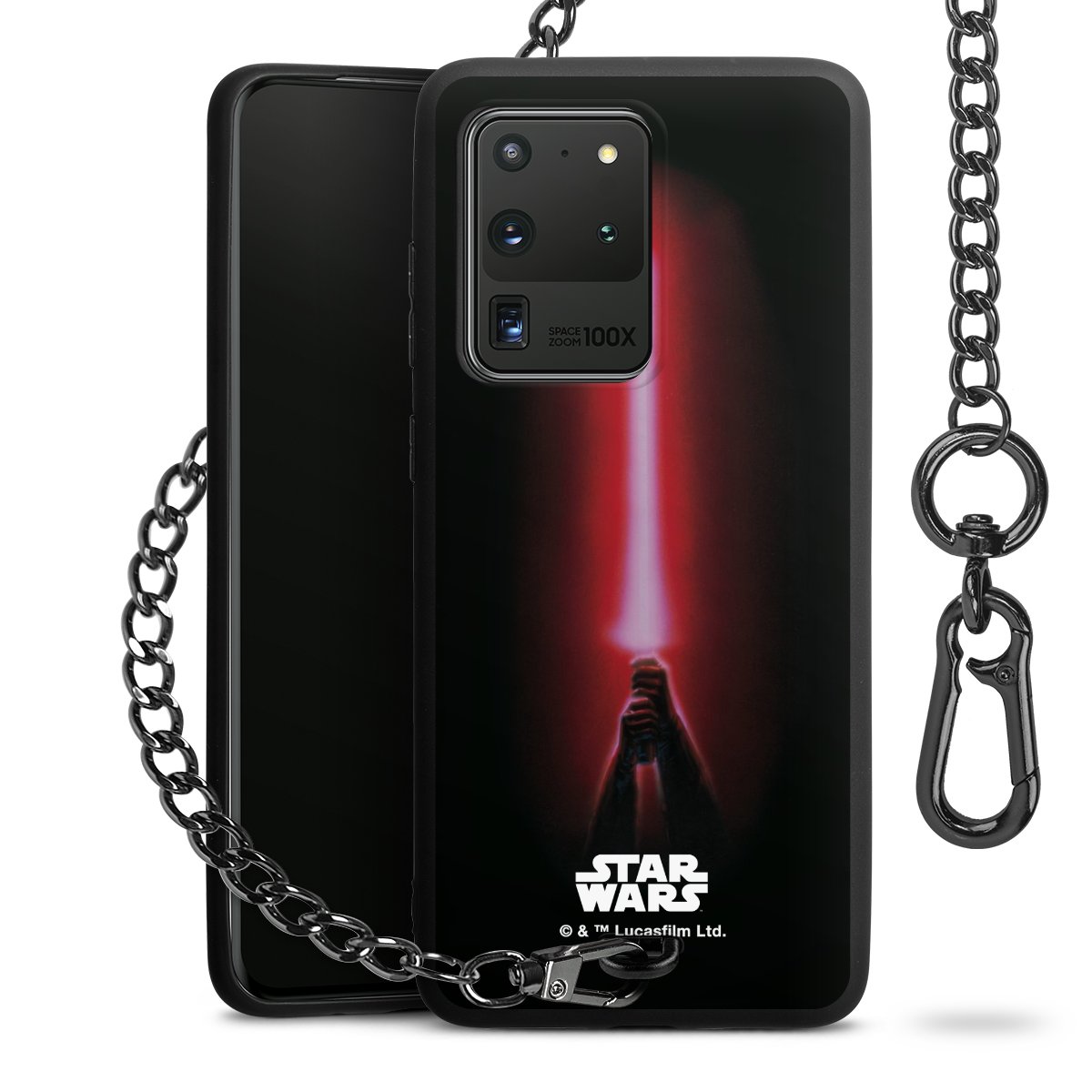 • Mattschwarze Handyhülle mit Metallkette