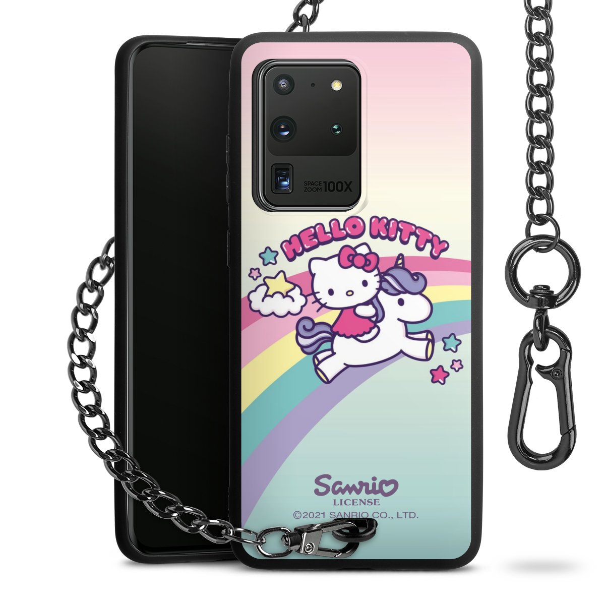Die mattschwarze Silikon-Handyhülle besteht aus robustem TPU (thermoplastisches Polyurethan). Sie ist flexibel und schützt Dein Smartphone vor Stößen und Kratzern. Die Kette sowie der Karabinerhaken sind aus Metall in Gunmetal-Optik gefertigt. Für dieses Produkt kommen ausschließlich TÜV-geprüfte Materialien zum Einsatz.