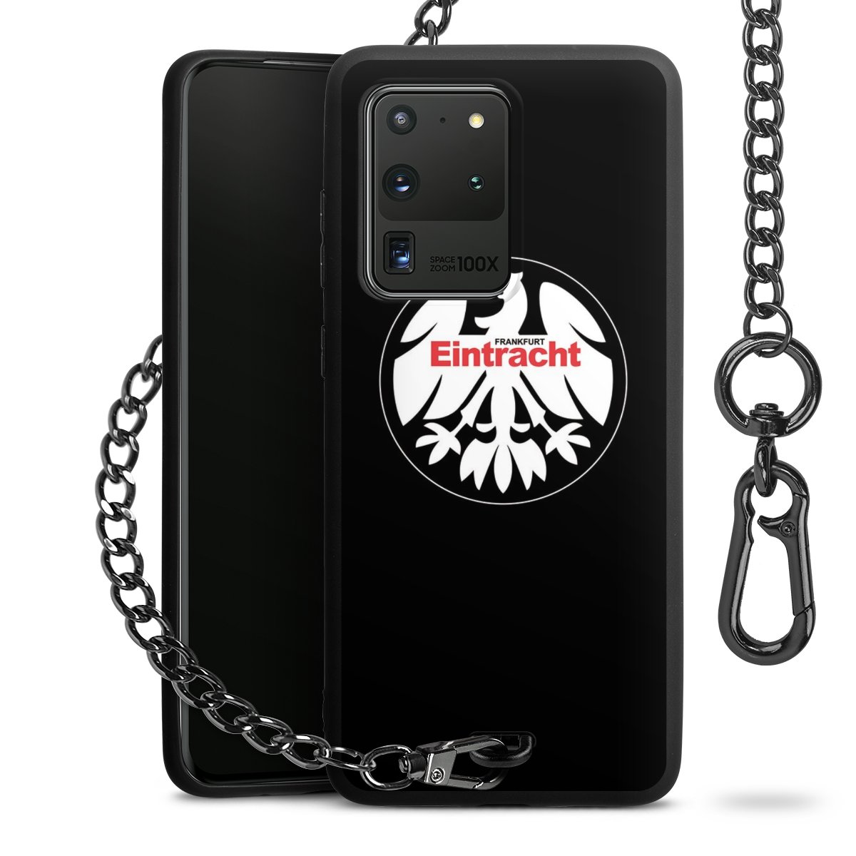 • Mattschwarze Handyhülle mit Metallkette
