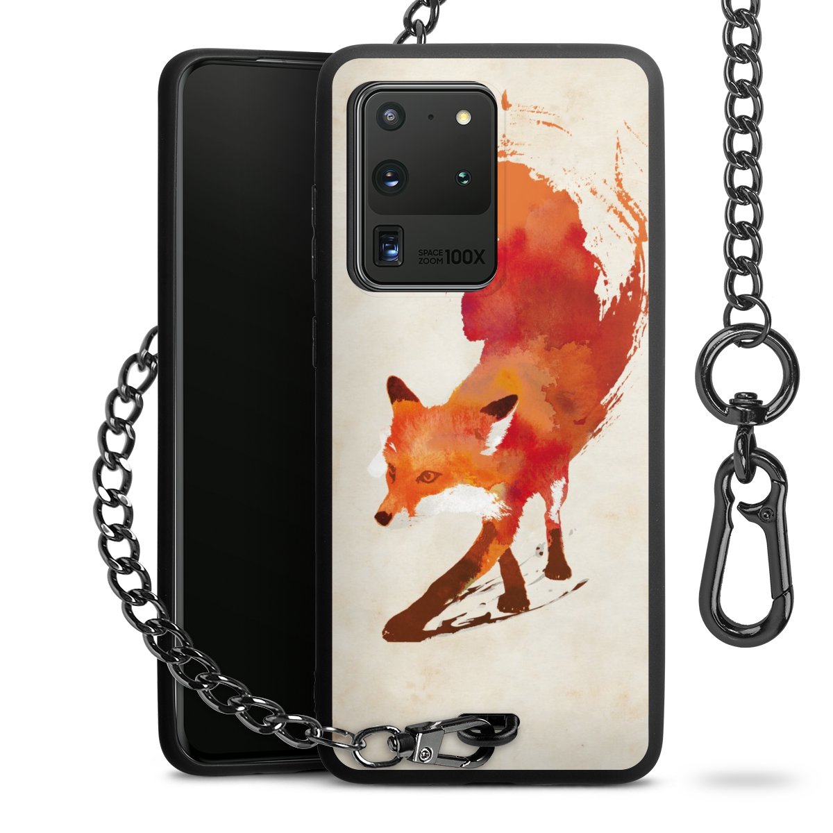 • Mattschwarze Handyhülle mit Metallkette