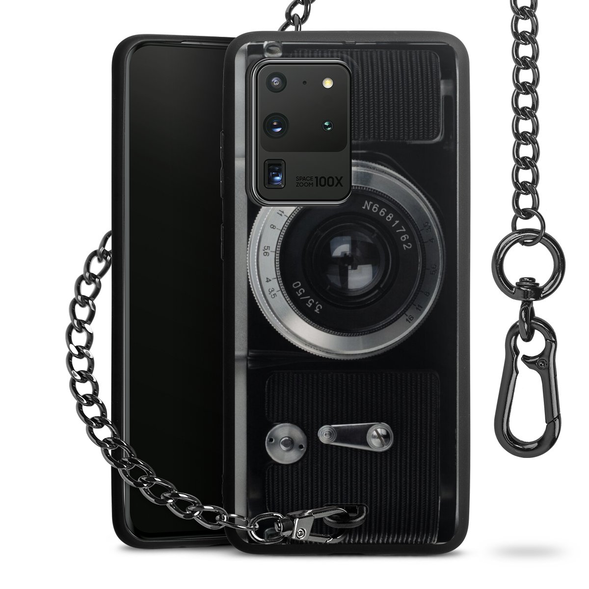 • Mattschwarze Handyhülle mit Metallkette