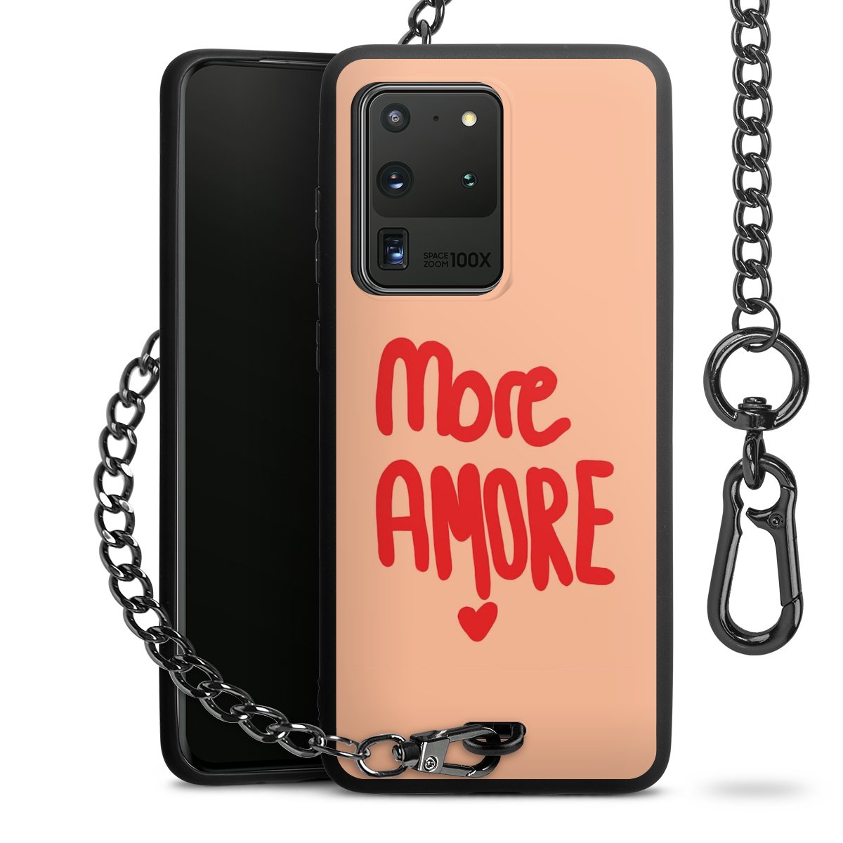 • Mattschwarze Handyhülle mit Metallkette