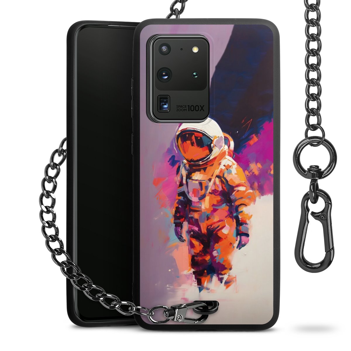 • Mattschwarze Handyhülle mit Metallkette