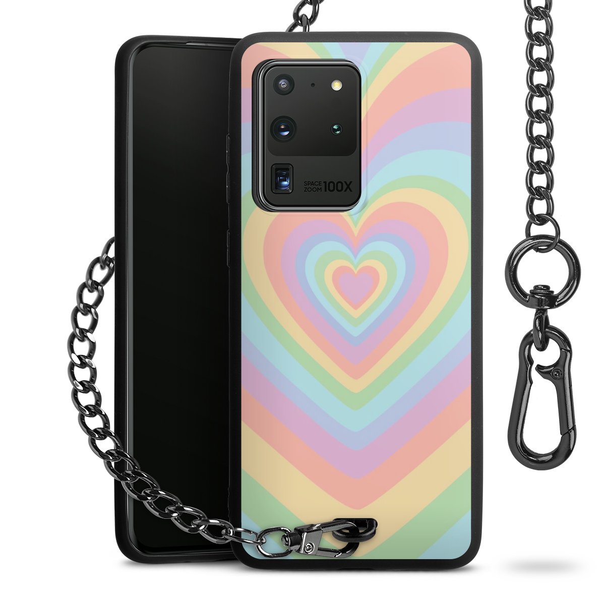 • Mattschwarze Handyhülle mit Metallkette