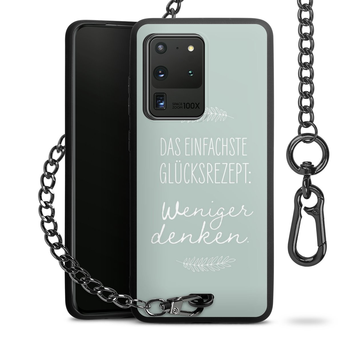 Die mattschwarze Silikon-Handyhülle besteht aus robustem TPU (thermoplastisches Polyurethan). Sie ist flexibel und schützt Dein Smartphone vor Stößen und Kratzern. Die Kette sowie der Karabinerhaken sind aus Metall in Gunmetal-Optik gefertigt. Für dieses Produkt kommen ausschließlich TÜV-geprüfte Materialien zum Einsatz.