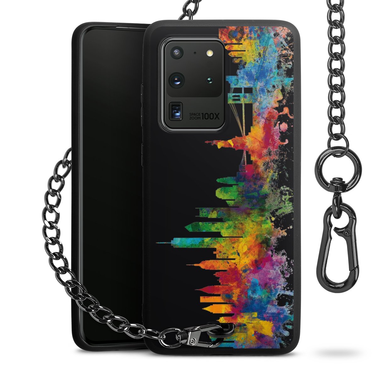 • Mattschwarze Handyhülle mit Metallkette