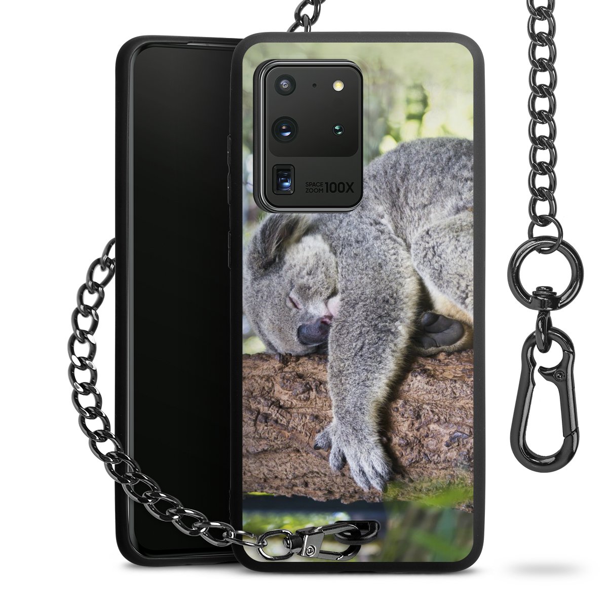 • Mattschwarze Handyhülle mit Metallkette