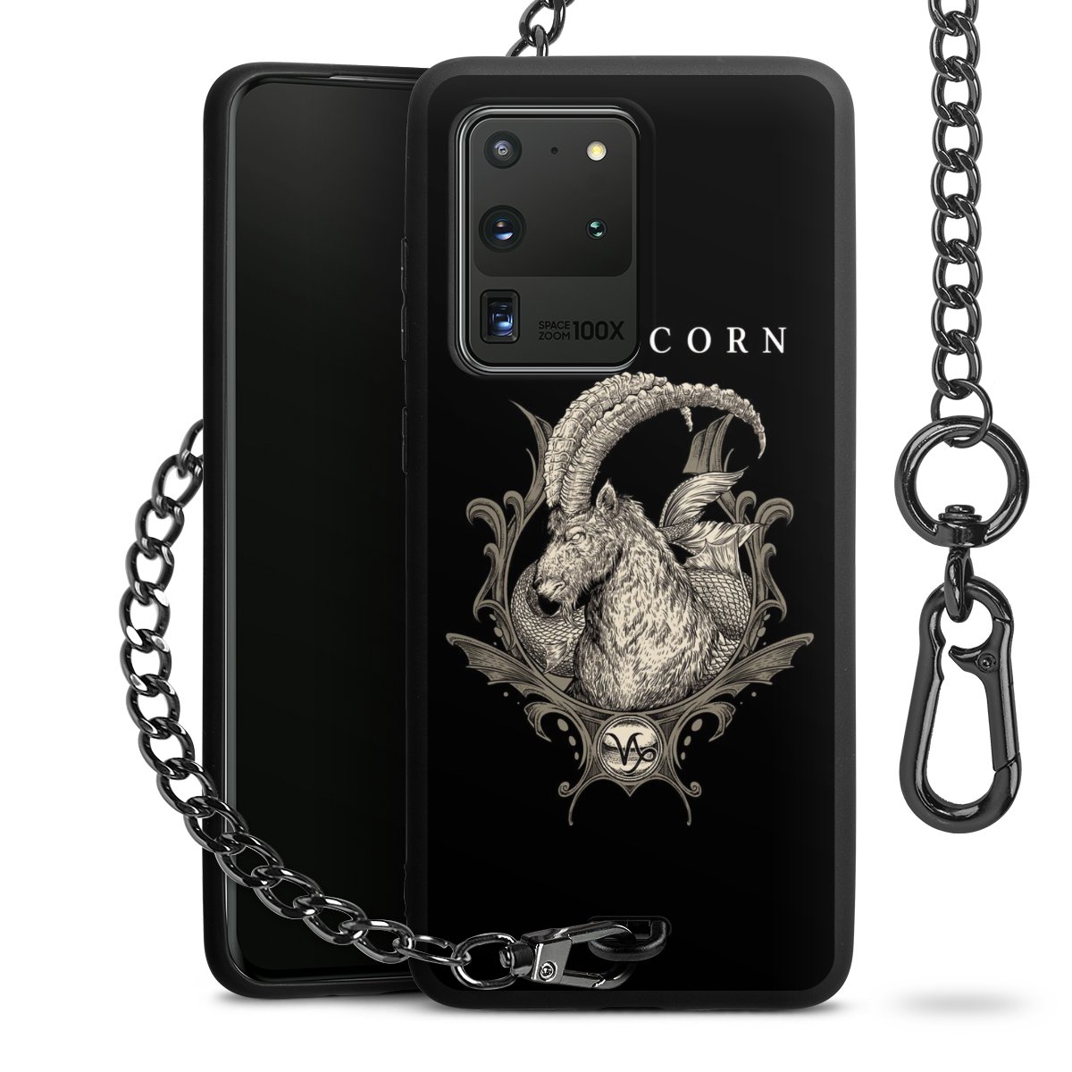 Die mattschwarze Silikon-Handyhülle besteht aus robustem TPU (thermoplastisches Polyurethan). Sie ist flexibel und schützt Dein Smartphone vor Stößen und Kratzern. Die Kette sowie der Karabinerhaken sind aus Metall in Gunmetal-Optik gefertigt. Für dieses Produkt kommen ausschließlich TÜV-geprüfte Materialien zum Einsatz.